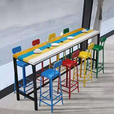 彩色实木吧台桌家用靠墙高脚桌铁艺长条桌酒吧奶茶店桌椅组合T