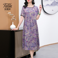 200斤加肥加大重磅真丝妈妈连衣裙时尚洋气夏季中年桑蚕丝长裙子