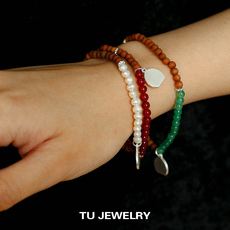 TU家《邂逅》芭比檀香木天然珍珠手链新中式气质叠戴手工弹力手串