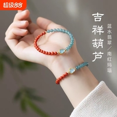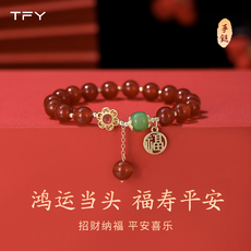天然红玛瑙和田玉手链轻奢小众精致福牌手串本名年送女友闺蜜礼物