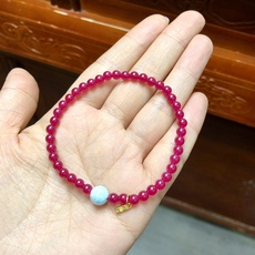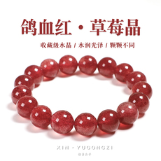 新款收藏级鸽血红草莓晶散珠圆珠粉晶手工DIY手串手链配饰