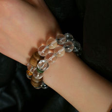 天然黑金超七水晶手链发晶云母双轮满发骨干钛晶男女金草莓晶手串