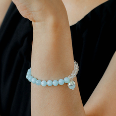 TU家小众设计海蓝宝拼白水晶串珠手串女夏季清凉水滴吊坠手链手环