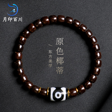 月印百川椰蒂手串男女款精工玛瑙三眼天珠老料高抛原色桶珠手链