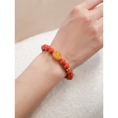 KAKA米兰秀客订新中式国风高品南红玛瑙满肉满色蜜蜡枣珠纳福手串