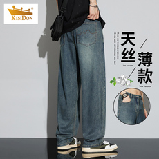 金盾天丝阔腿牛仔裤宽松直筒休闲百搭复古垂感潮流长裤高档超薄