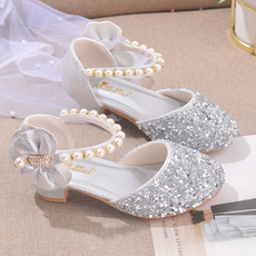 女童金色礼服走秀演出鞋小高跟皮鞋儿童公主鞋中大童学生舞蹈单鞋
