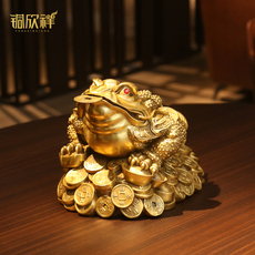 纯黄铜金蟾招财摆件客厅三足金蟾蜍家居玄关装饰金蝉店铺开业礼品
