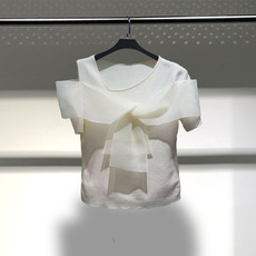 设计感冰丝针织短袖t恤女夏季新款薄款绑带打结宽松百搭打底上衣