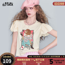 拉夏贝尔法式露锁骨v领针织短袖T恤女夏季新款冰丝薄款体恤上衣