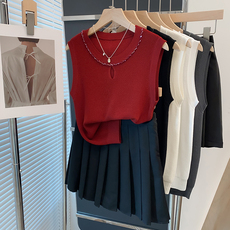 圆领冰丝针织衫女背心2025夏装新款镂空内搭上衣外穿薄无袖t恤衫