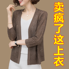 莱赛尔天丝亚麻开衫女外搭夏季薄款坑条冰丝短袖防晒针织衫上衣