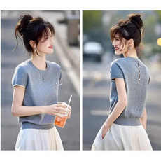 2025新款夏季韩版气质百搭短袖冰丝针织上衣女圆领套头洋气T恤