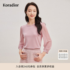 珂莱蒂尔粉色冰丝针织衫女长袖设计感法式优雅套头圆领上衣女