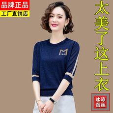 中年妈妈桑蚕丝中袖t恤女夏季冰丝针织衫亮丝上衣真丝洋气小衫潮