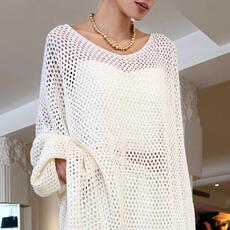 时尚菱形格圆领薄款飞袖莱塞尔冰丝针织衫女2025新款宽松显瘦上衣