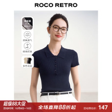 正肩藏青色t恤女短袖夏季薄款法式小个子短款冰丝针织polo衫上衣