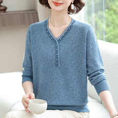 春秋洋气高贵妈妈宽松薄款针织t恤加肥加大码中老年女装冰丝上衣