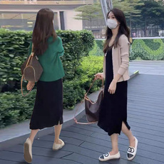 长袖针织开衫吊带裙套装2023春秋新款两件套女装中长款显瘦连衣裙