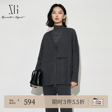 声雨竹官方旗舰专柜秋季新款针织衫女宽松休闲开衫中长款长袖外套