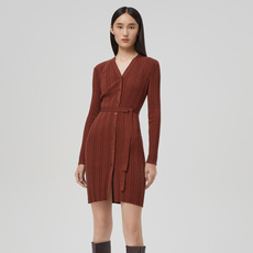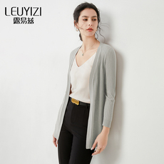 [朗姿奥莱]LANCY/朗姿羊毛针织开衫秋季新款长袖中长款女通勤毛衣