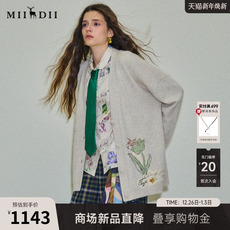 谜底针织开衫长袖2025冬季新品V领中长款亲肤保暖毛衣女254MZ1927