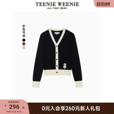 TeenieWeenie小熊秋季通勤知性短款毛衣毛针织衫撞色白色外套女装