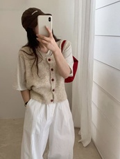 短款春秋款叠穿新款宽松复古针织毛衣马甲女背心韩版百搭外穿外套