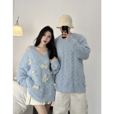 九六致秋冬韩版圆领纯色情侣毛衣宽松休闲针织衫男女毛衫潮流百搭