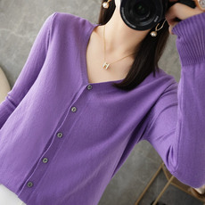 特价春秋羊毛开衫女短款外搭v领薄宽松针织长袖毛衣韩版毛衫外套