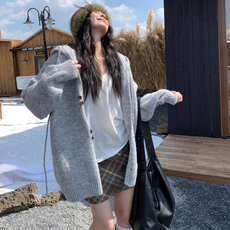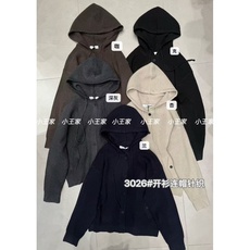 小王家3026秋冬韩版宽松大码胖mm慵懒松弛风开衫连帽针织毛衣外套