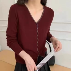 乔俪莎针织衫女V领长袖初秋宽松显瘦韩版时尚毛衣2025秋新款7569