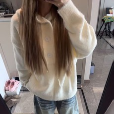 oversize!白色连帽水貂绒套头毛衣女秋冬新款韩版宽松针织衫外套