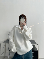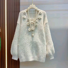 MEIMEI梁美美软糯针织套头上衣慵懒风韩版宽松毛衣外套女大码秋冬