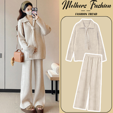 孕妇套装秋冬2025新款宽松遮肚韩版针织加厚围脖毛衣裤子两件套女