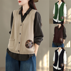 小王家2895秋冬韩版宽松大码胖mm慵懒松弛民族风圆领针织毛衣马甲