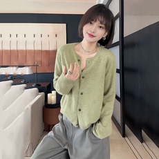 春秋薄款羊毛针织开衫女韩版圆领宽松短款高级感外搭毛衣外套上衣