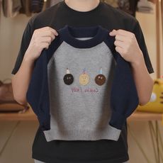 2025儿童秋冬季韩版时尚针织衫男童女童拼色宽松卡通刺绣软糯毛衣