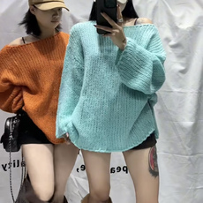 Z-ONE 2025秋季新款韩版一字肩毛衣女宽松慵懒风百搭露肩针织衫女