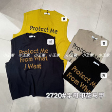 小王家2720秋季韩版宽松大码胖mm慵懒风叠穿字母针织毛衣马甲背心