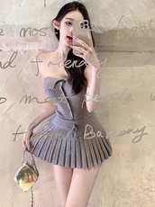 一套价!现货立发!纯欲针织背心百褶裙时尚套装两件套防走光内衬
