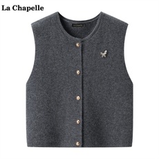 拉夏贝尔/La Chapelle韩版圆领针织马甲女无袖开衫金属扣外搭坎肩