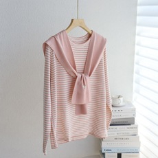 长袖针织衫女2025初秋新款带披肩两件套外穿宽松粉色披巾外套上衣