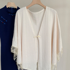 复古民族风披肩针织旗袍连衣裙新款搭配流苏开衫女外搭蕾丝小坎肩