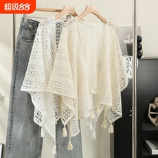 大码针织开衫外套女夏薄款镂空冰丝防晒披肩空调罩衫短款上衣胖mm