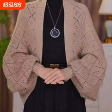 七色纺春秋新款披肩旗袍外搭女中式复古文艺针织镂空简约气质开衫