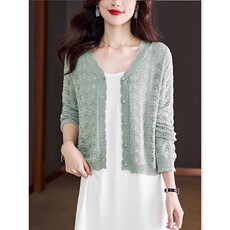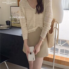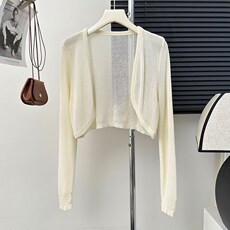 镂空针织短外套女春夏长袖披肩防晒衫空调衫吊带洋装外搭薄开 衫
