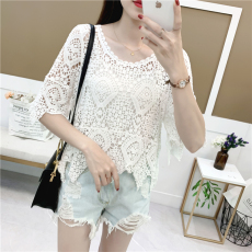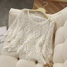 套头罩衫夏季防晒百搭短款空调坎肩外套女针织镂空勾花蕾丝小披肩