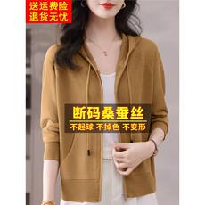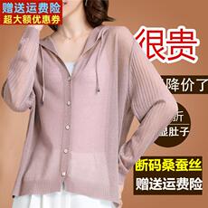 初春秋新桑蚕丝空调衫女开衫夏季外搭薄款连帽大码针织披肩小外套