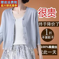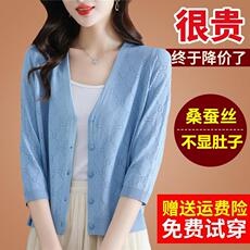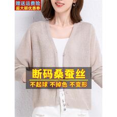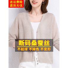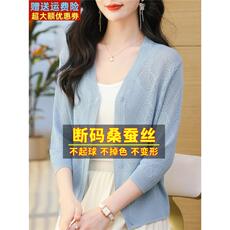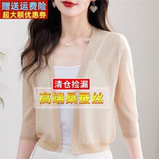 初春秋夏真丝外搭开衫女桑蚕丝薄款针织冰丝小披肩防晒空调衫夏季